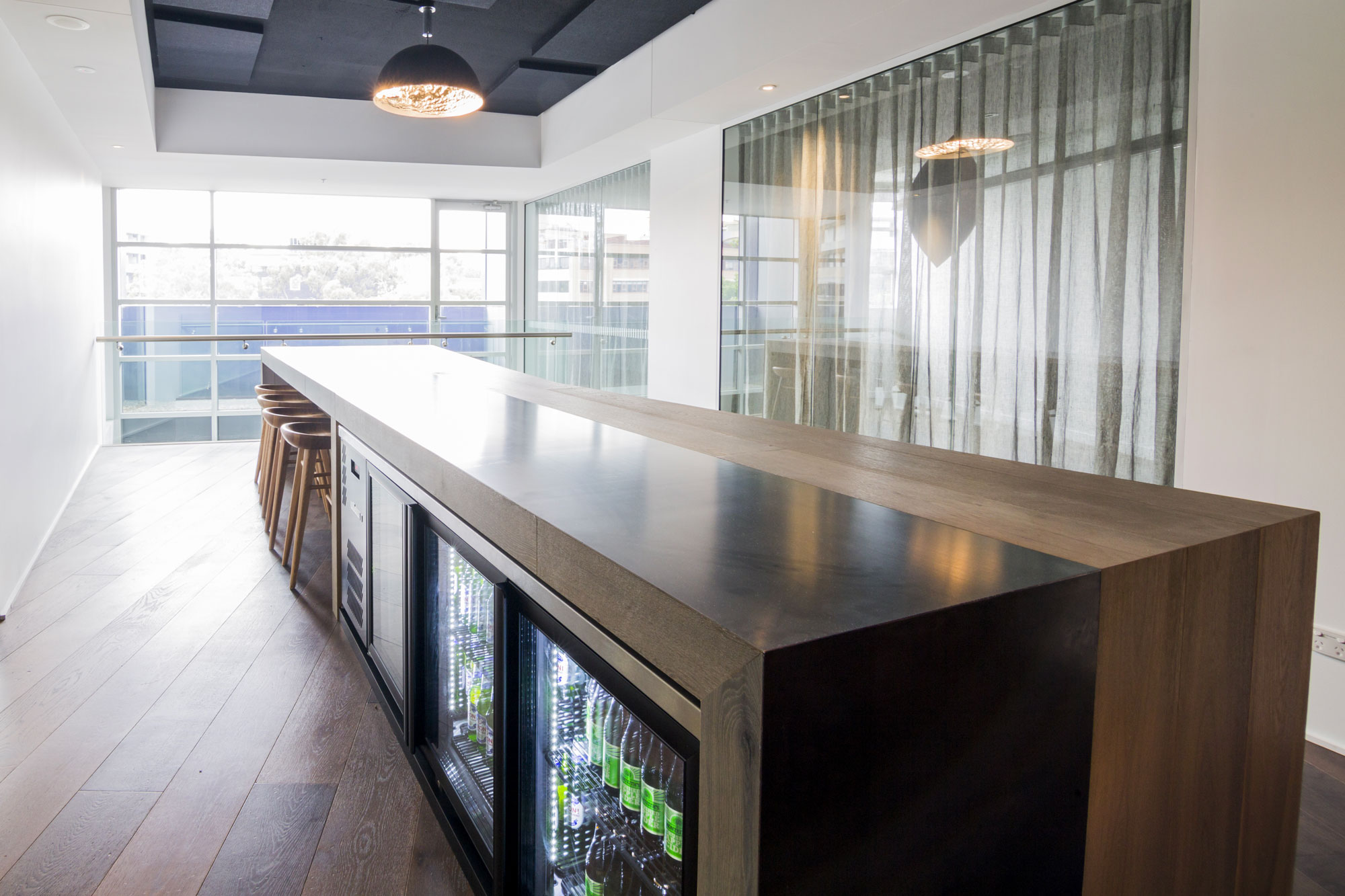 The project involved creating five break out spaces over five different levels for this shared office facility. Featuring bespoke cabinetry, high-end quality appliances and finishes, the design was bought to life with precision execution.