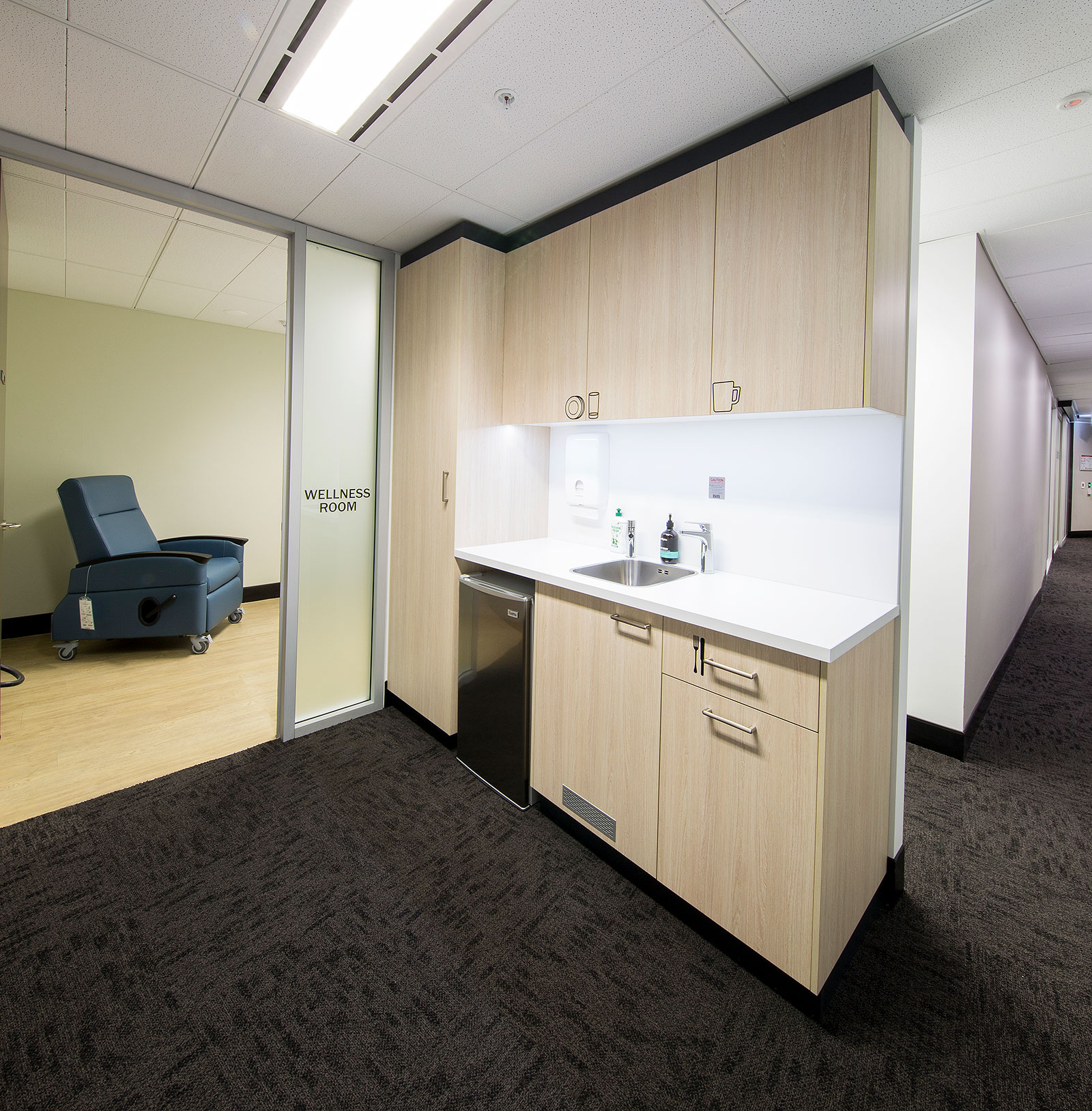 > Acoustic Panelling used to create breakout pockets that minimise disruption
